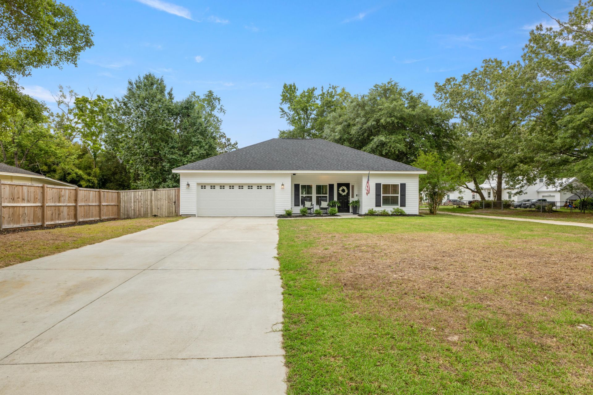 You have to come look at this home in Moncks Corner! This ONE story ranch-style home conveniently located near the lake! As you drive up to the property you won't be able overlook the new stained fence with additional gate entrance, or the large double car driveway or two car garage with plenty of space to pull your car inside! Walk up to the home to find a covered front porch & walk inside a true OPEN floor-plan, perfect if you like having guests over. The Kitchen features granite countertops, white cabinetry, stainless steel appliances, and extended kitchen eat in bar! The floor-plan is a breeze with it flowing from the dining room, kitchen room, and living room that will lead you to the fenced in backyard. Perfect for that morning cup of coffee or afternoon BBQ's!The Primary bedroom is situated away from the other bedrooms for that added level of privacy, and features a tray ceiling with a nice size walk in closet!You just have to come see this home for yourself!